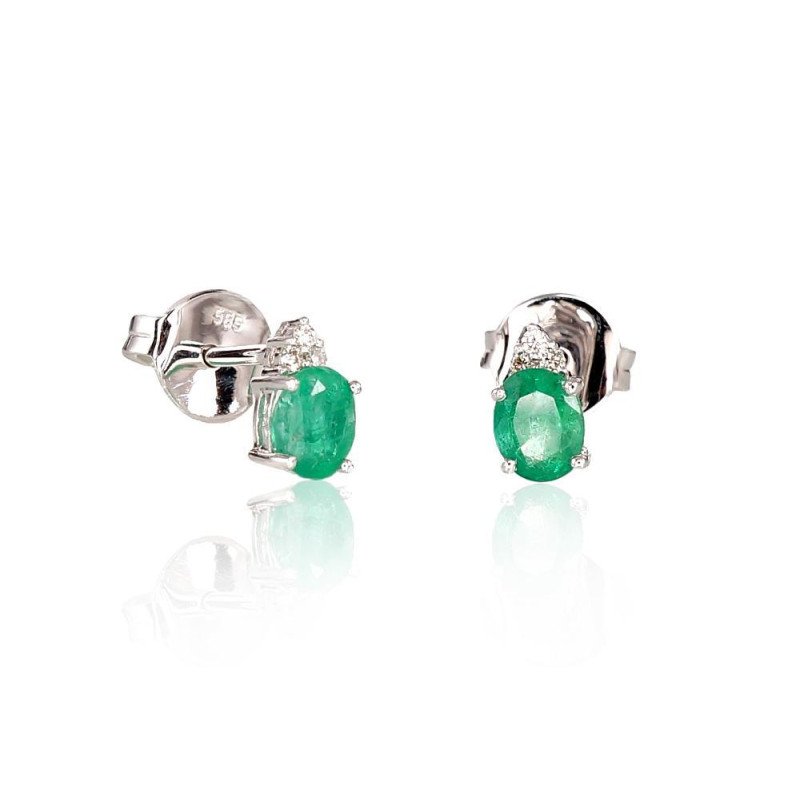 Zelta auskari-puseti, Baltais Zelts 585°, Briljanti, Smaragds