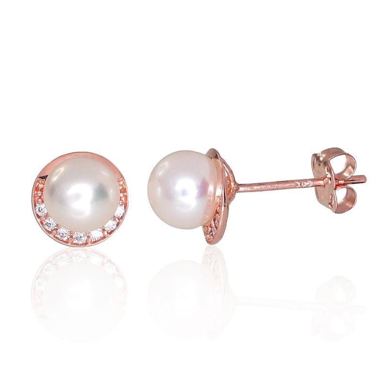 Zelta auskari-puseti, Sarkanais Zelts 585°, Cirkoni, Pērles