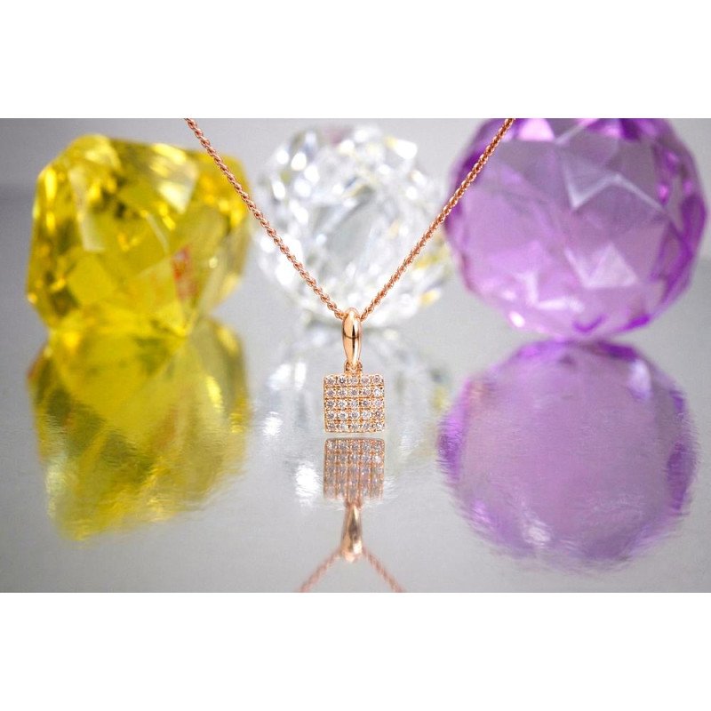 Šis izsmalcinātais sarkanā zelta kulons izstaro rafinētību ar savu hipnotizējošo dzirkstošo dimantu klāstu. Tā eleganci ietver kompakta 11 mm garuma izmērs, padarot to par nenoteiktu, tomēr aizraujošu rotu jebkuram apģērbam.