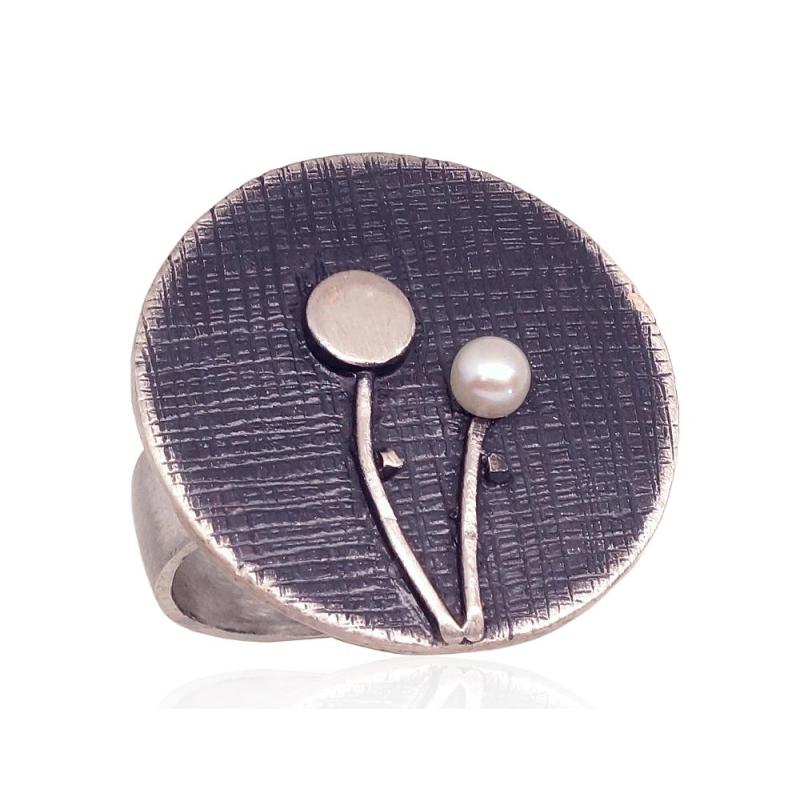 Серебряное кольцо, Серебро 925°, оксид (покрытие), Жемчуг