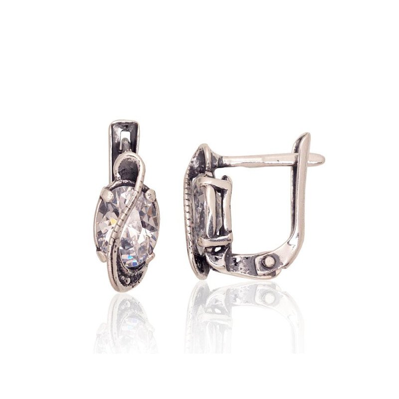 Серебряные серьги на английском замке, Серебро 925°, оксид (покрытие), Цирконы