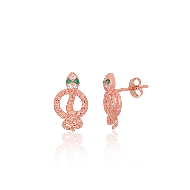 Серебряные серьги-пуссеты, Серебро 925°, красное золото (покрытие), Цирконы