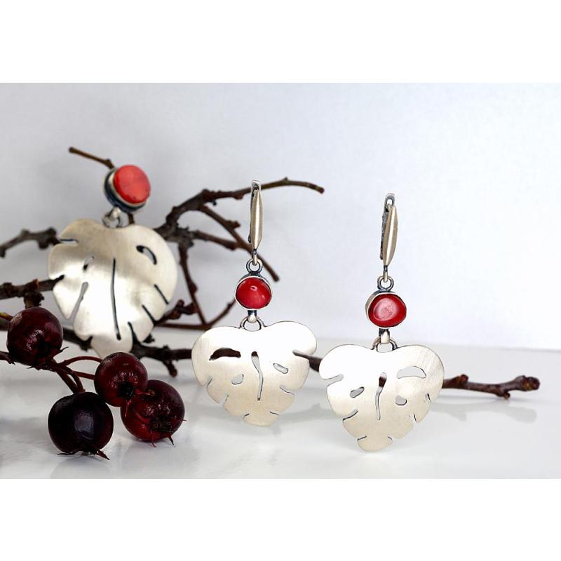 Серебряные серьги, Серебро 925°, оксид (покрытие), Коралл