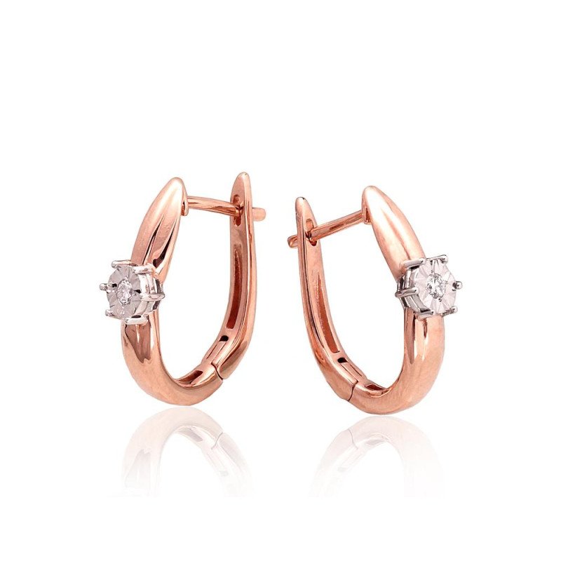 Золотые серьги, Красное/Белое Золото 585°, Бриллианты