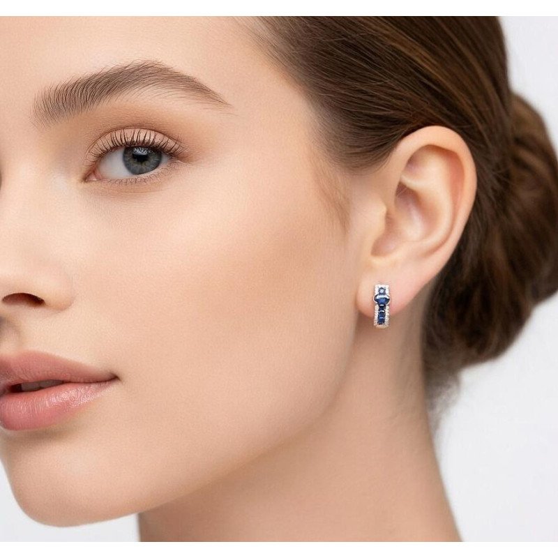 Золотые серьги на английском замке, Красное Золото 585°, родий (покрытие), Бриллианты, Сапфир